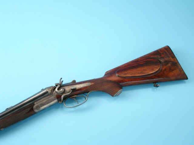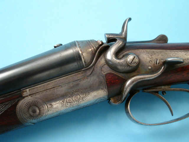 fore-end mounts; lever fore-end release; double triggers, set for rifle barrel; side lever