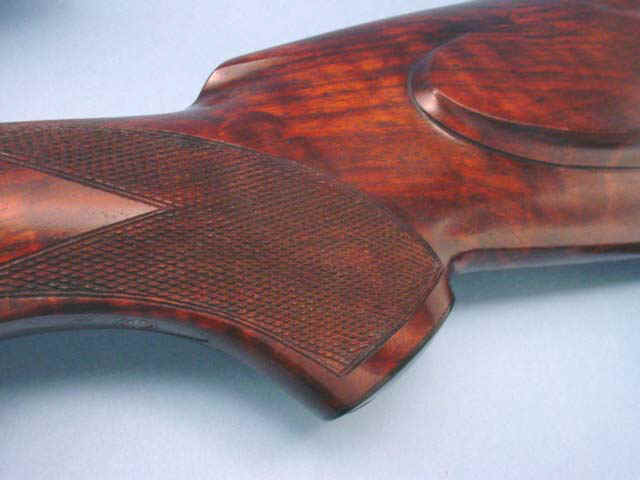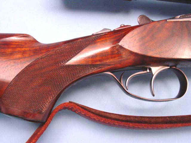 multi-coated lenses. Leather lens cover. Set triggers. Checkered walnut stocks. Sling
