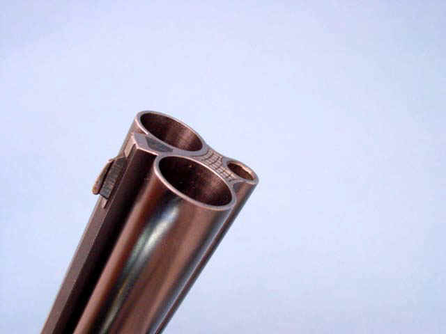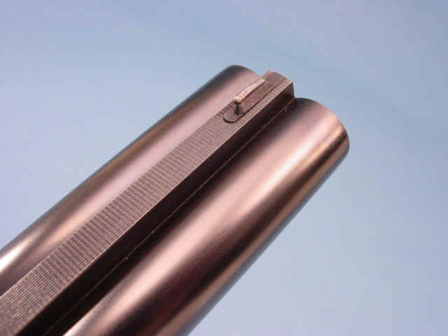24 3/4-inch barrels with flip-up rear sight and textured rib. Blued finish.