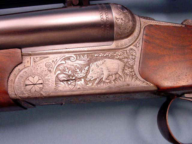 Chisel-engraved frame in-the-white with game animal pictorial vignettes. Thumb safety and