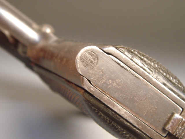 Serial no. 12631, 9mm, 5 3/4-inch barrel. Blued finish. Checkered hard rubber grips.