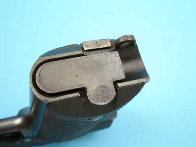 Serial no. 16505, 9mm, 5 1/4-inch barrel. Blued finish. Checkered walnut grips.