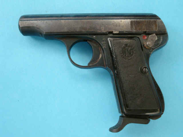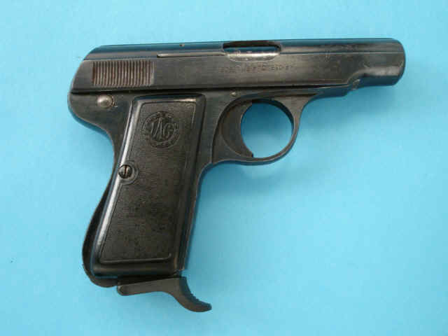 Serial no. 158553, 7.65mm, 3 1/4-inch barrel. Blued finish. Hard rubber grips with