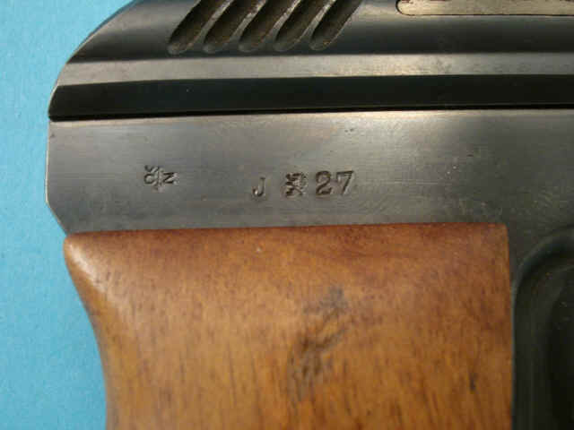 Serial no. 116326, 9mm Kurz caliber, 3 1/2-inch barrel. Blued finish. Walnut grips.