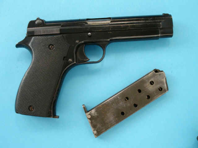 Serial no. B4223A, 7.65mm long, 4 1/4-inch barrel. BLack finish. Checkered black