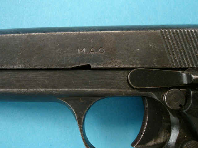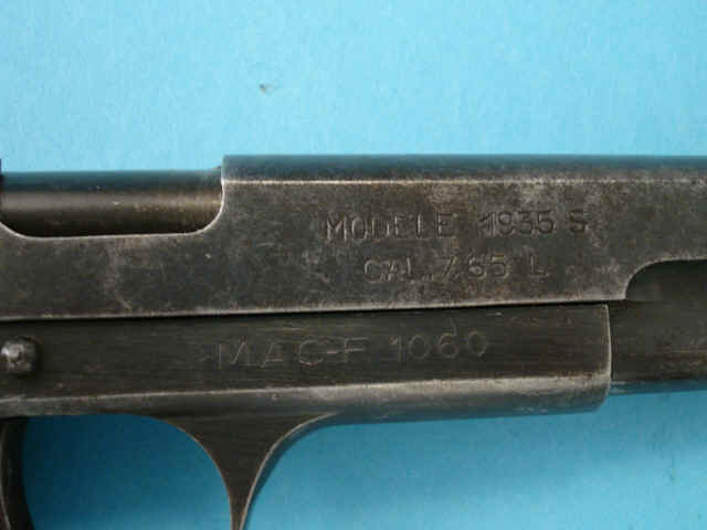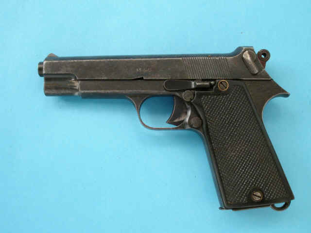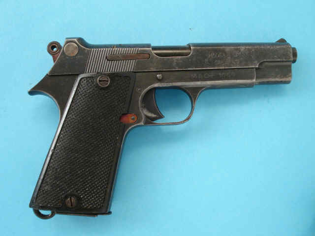 Serial no. F-1060, 7.65mm long, 4 1/4-inch barrel. Blued finish. Checkered black