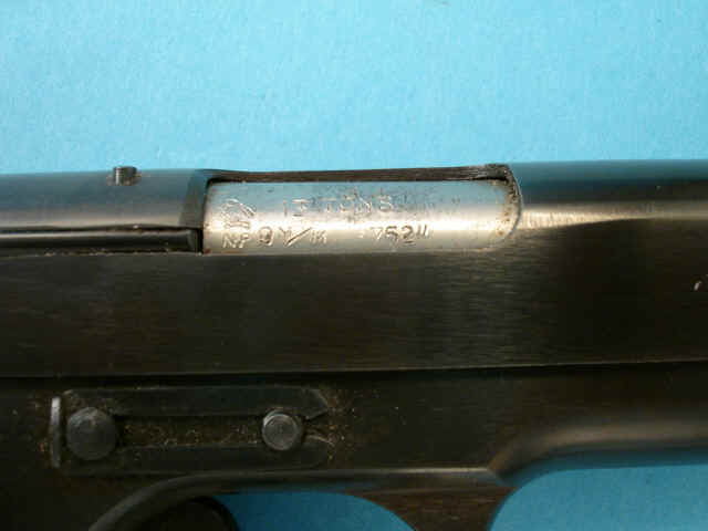 Serial no. 07133, 9mm parabellum caliber, Blued finish. Brown phenolic resin grips.