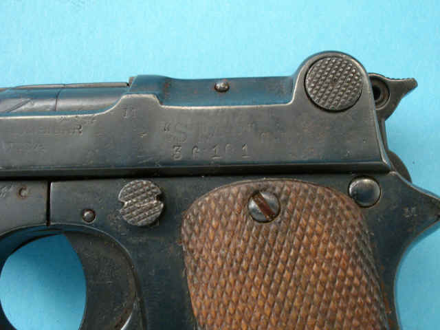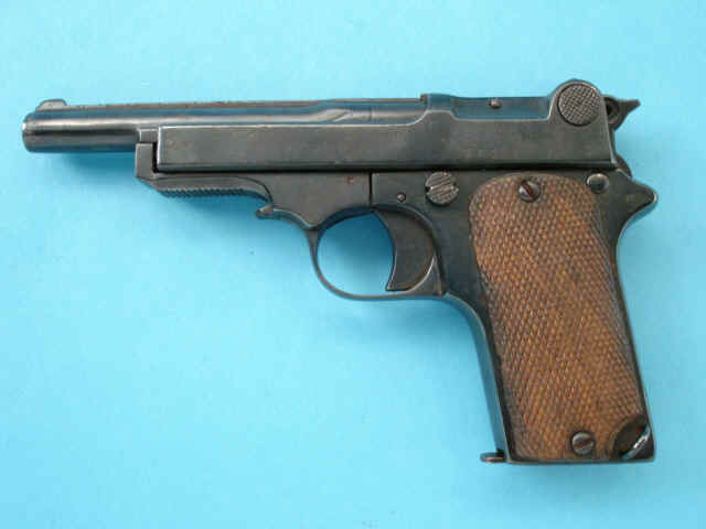 Serial no. 36101, 7.65mm, 4 5/8-inch barrel. Blued finish. Checkered walnut grips.