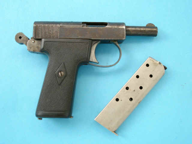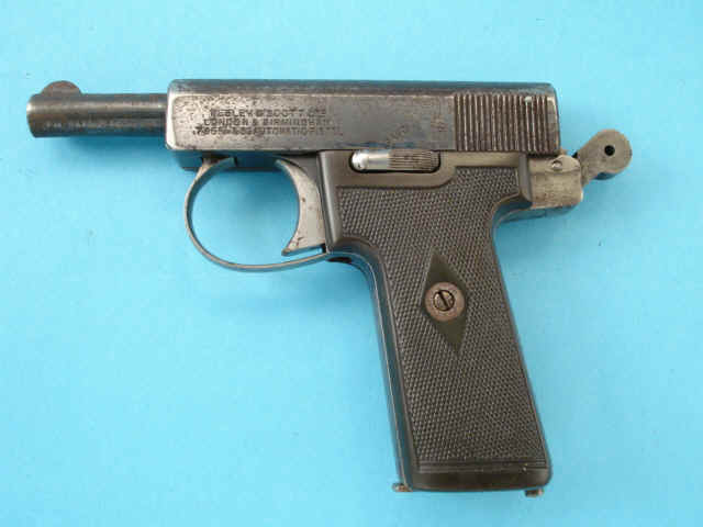 Serial no. 153962, 7.65mm, 3 1/4-inch barrel. Blued finish. Hard rubber grips.