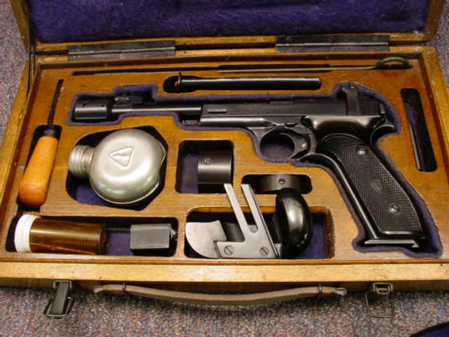 carrying case, contour fitted and cloth lined, with extra magazine, screwdriver, cleaning