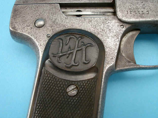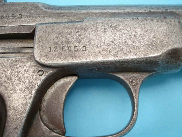 Serial no. 126053, 7.65mm, 4-inch barrel. Hard rubber grips. Lanyard loop.