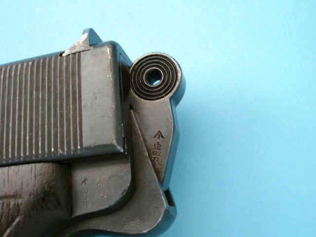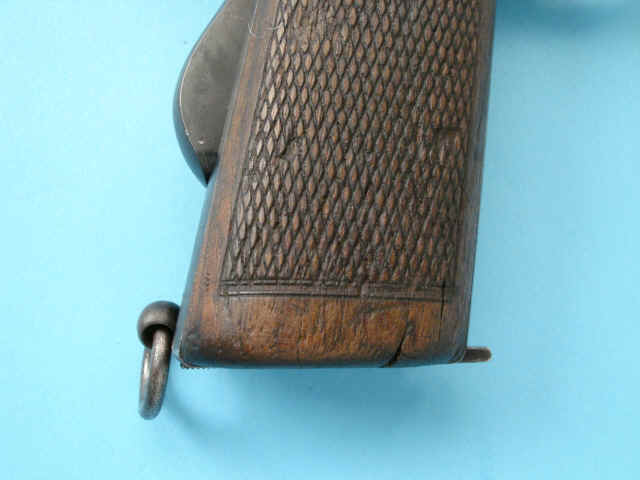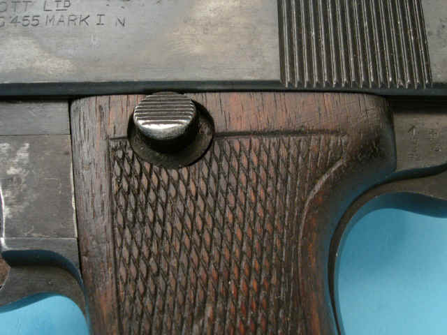 British proof markings; blued finish; checkered walnut grips.