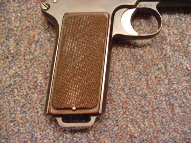 Serial no. 14463, 8mm Steyr caliber, 5-inch barrel; standard markings; blued finish; checkered walnut grips.