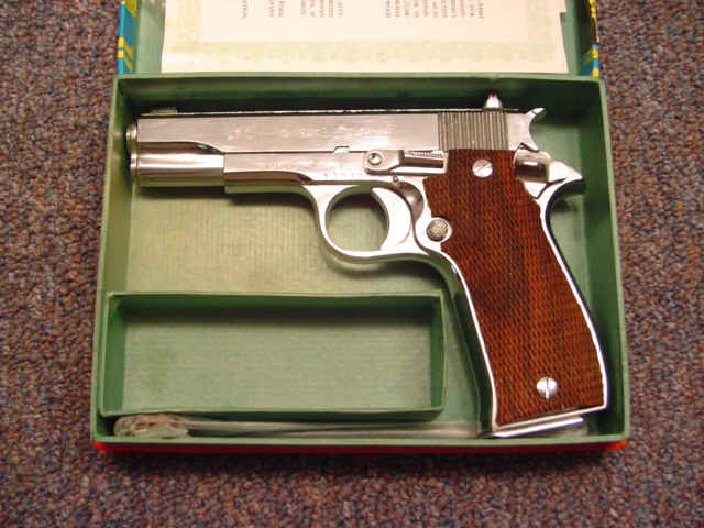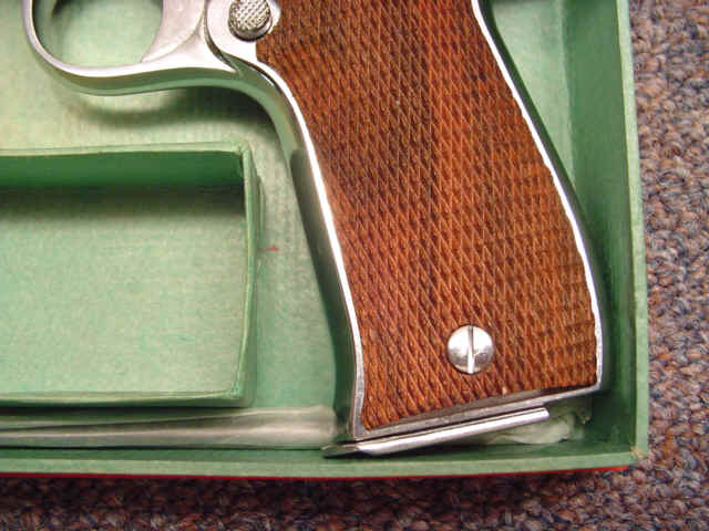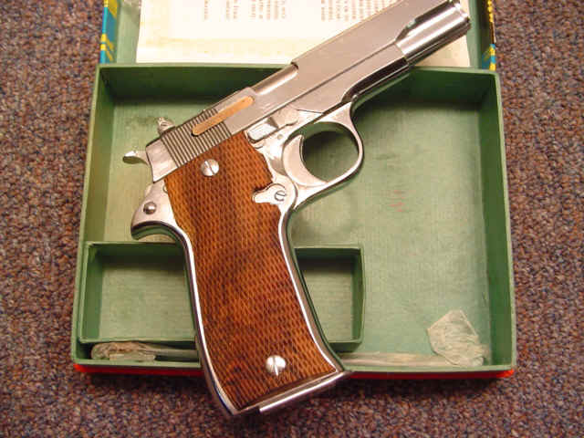 Serial no. 1323089, .380 caliber, 4-inch barrel; standard markings; chrome-plated;