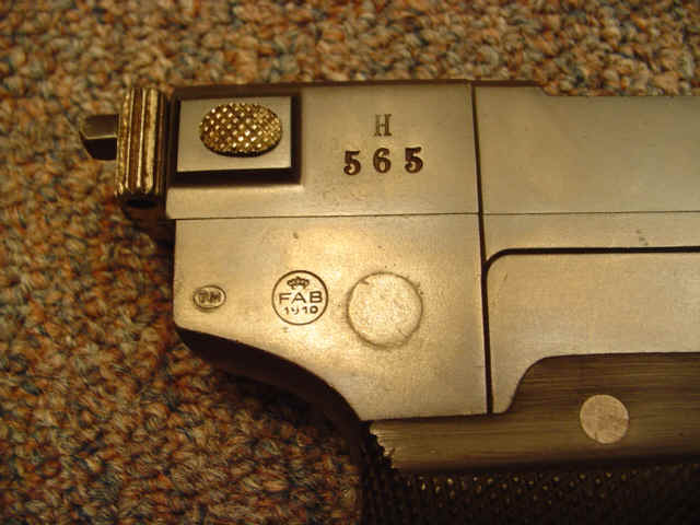Lot 336 Detail Glisenti Model 1910 Semi-Automatic Pistol Serial no. H565, 9mm caliber, 3 3/4-inch barrel; standard markings; blued finish; checkered composition grips. Condition: Fine; 95% blue; minor wear. Estimate: $200 - $300 DVD Beretta: How to Shoot Starring: Bill Wilson Director: Lenny Magill Click here for more info Downloadable E-book Full-Auto Conversion For Browning Pistols Click here to download The World of Beretta: An International Legend by R. L. Wilson Click here for more info Gun Digest Book Of Beretta Pistols by Massad F. Ayoob Click here for more info
