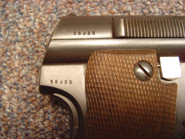 Serial no. 55835, 9mm caliber, 5 3/8-inch barrel; standard markings; blued finish;