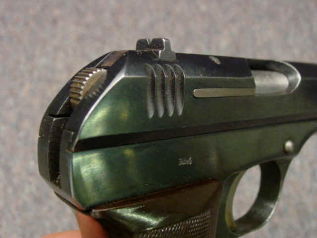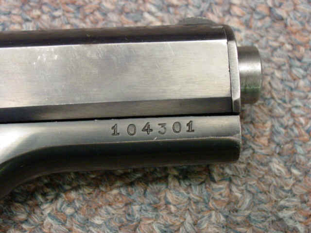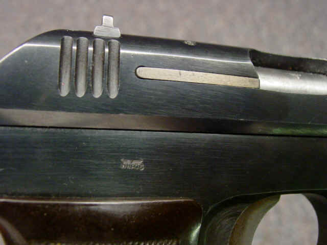 Serial no. 104301, 7.65mm, 3 3/4-inch barrel. Blued finish. Waffenamt stamps. Checkered