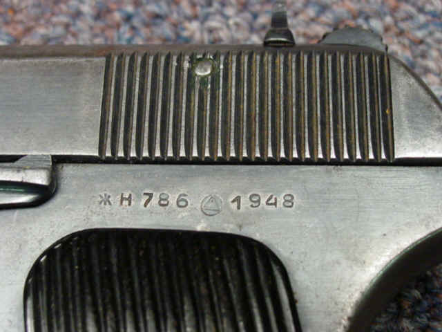 Serial no. H786, 7.62 x 25 mm, 4 1/2-inch barrel. Blued finish. Slide inscribed: Howard
