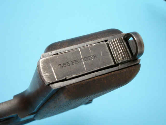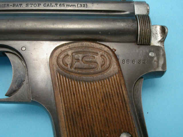Serial no. 88632, 7.65mm, 4-inch barrel. Blued finish. Walnut grips. Contained in