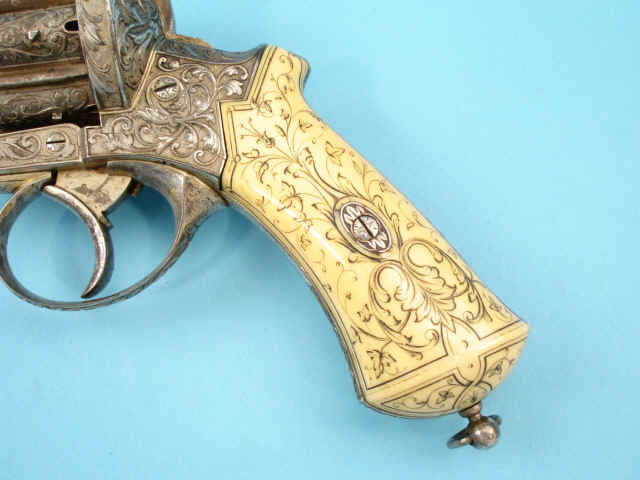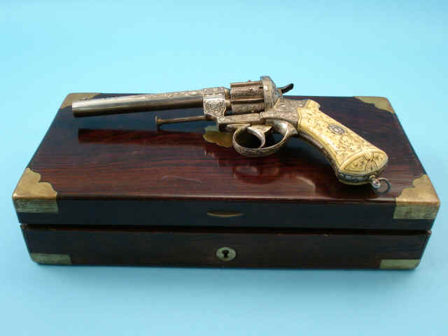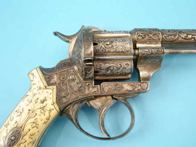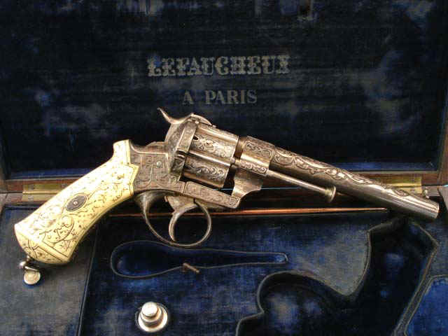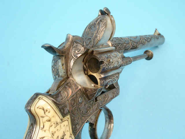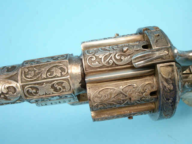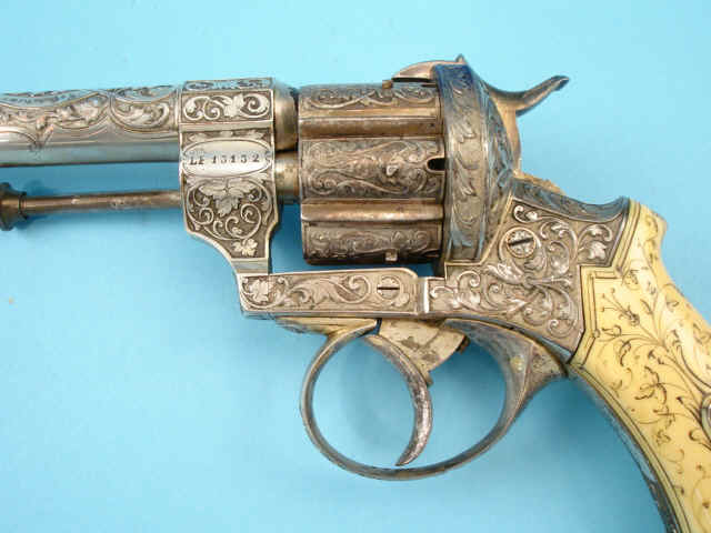 Very Fine Cased Exhibition-Engraved Silver-Plated Double Action Revolver by Lefaucheux