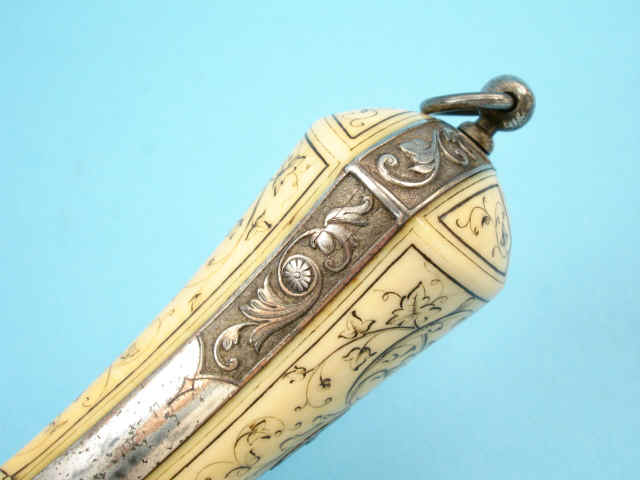 scrimshaw-decorated ivory-mounted turn-screw, copper-washed cleaning rod, silver-plated