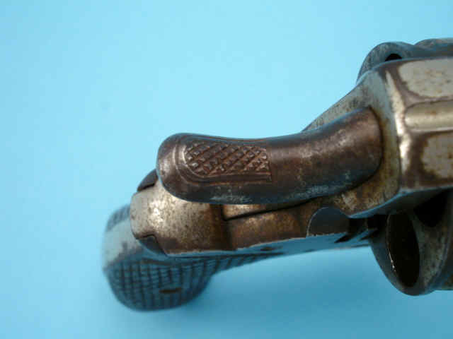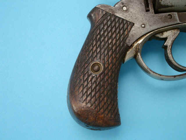 Unserialized. .44 caliber, 2 1/2-inch barrel. Nickel-plated finish. Checkered walnut