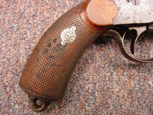 and grip screw escutcheons. Checkered walnut grips.