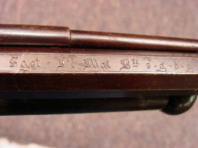 caliber smoothbore, 6 3/4-inch octagonal barrel with marking on top, engraved in olde