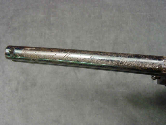 relief scroll, leaf, and border engraved barrel, cylinder and frame, with relief carved
