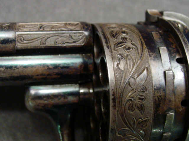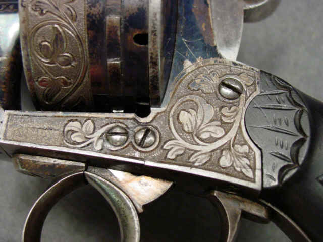ebony grips. Liege, Belgium, proofmarks on breech of cylinder, ELG with * and crown over