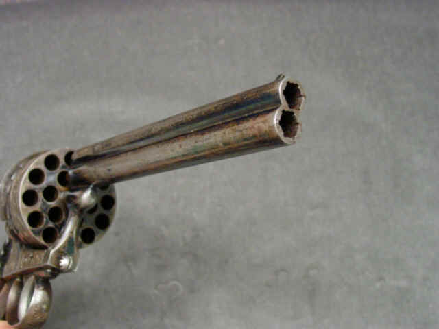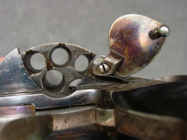 Serial no. 1476, 9.5mm pinfire caliber, 6 1/4-inch rifled over-and-under barrels, the