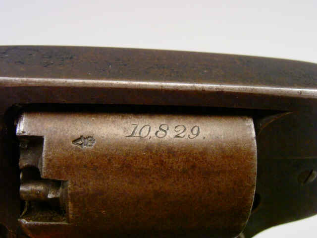 inspector stamp. Blued finish. Case-hardened hammer. Five-shot cylinder. Double action.