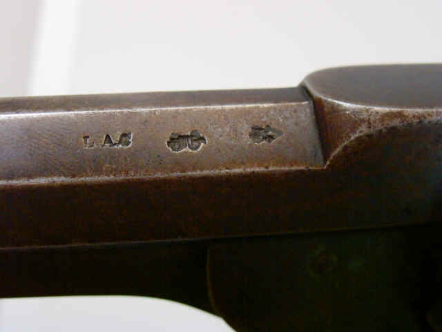Serial no. 10829. .44 caliber, 5 1/2-inch octagonal barrel. London proofs. L.A.C.