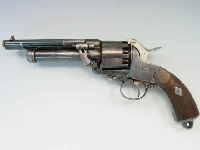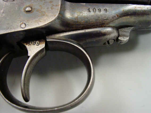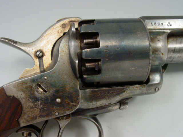 Bte. Paris. Dove-tailed front sight. Nine-shot cylinder. Blued finish. Polished steel
