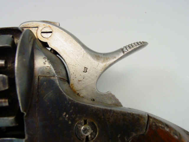 hammer stamped on left side "B". Rounded triggerguard. Checkered walnut grips.