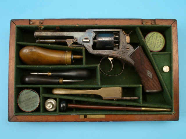 hammer. London proofs. Checkered walnut grips. Contained in original partitioned mahogany