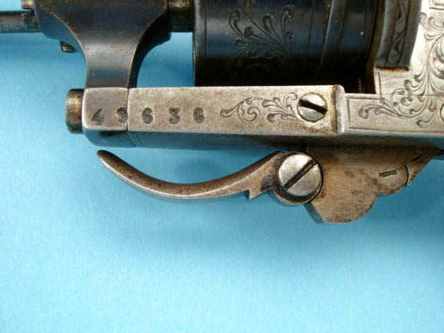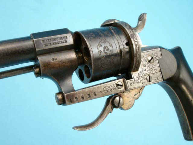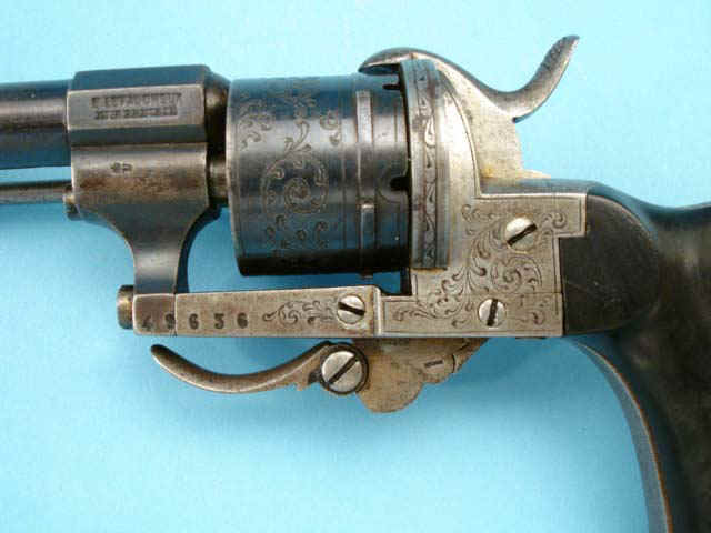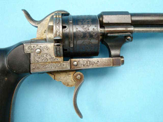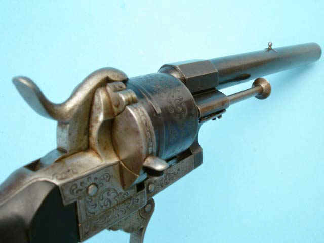 Fine Engraved Lefaucheux Double Action Pinfire Revolver with Ebony Grips