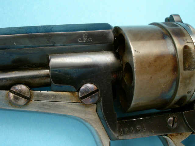 checkered and varnished walnut grips. Crown over C.F.G. proofmarking on left side of
