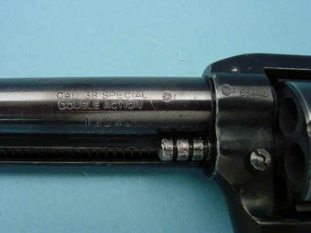 Serial no. 13240, .38 special caliber, 5-inch barrel. Blued finish. Checkered hard