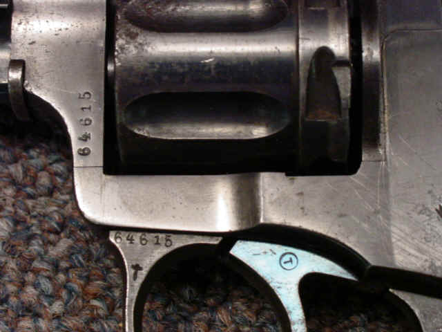 Serial no. 64615, 7.62 mm, 4 1/2-inch barrel. Blued finish. Frame dated 1914.