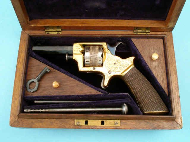 Fine Cased and Engraved "Baby Tranter" Single Action Spur Trigger Revolver