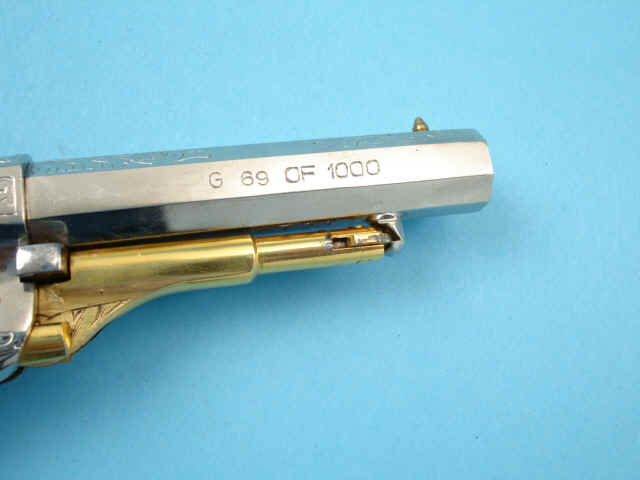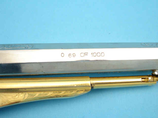 Serial no. 91414, .44 caliber. 8-inch octagonal barrel. Nickel and gold-plated finish.