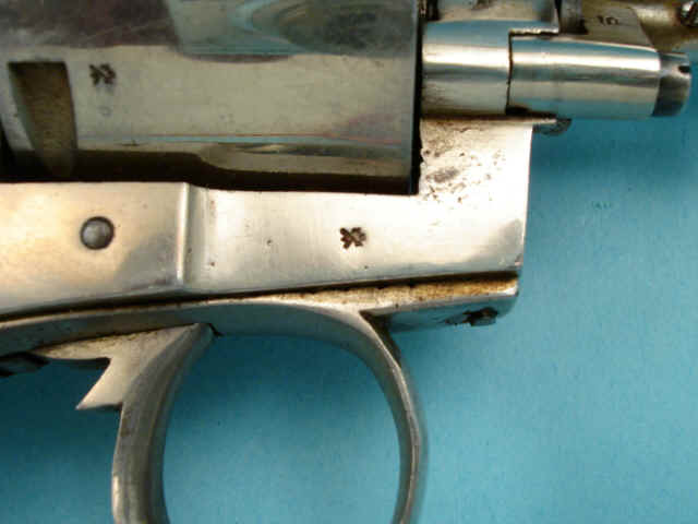 side of frame; 2 on cylinder periphery by each stop slot. U and S on breech end of