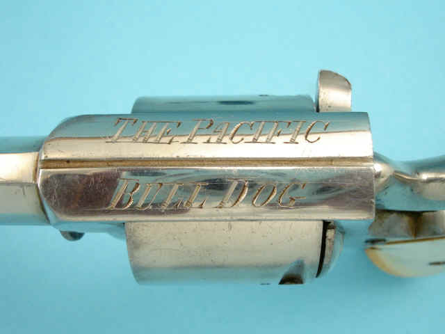 with flat top; THE PACIFIC/BULL DOG engraved on topstrap; nickel-plated, with blued