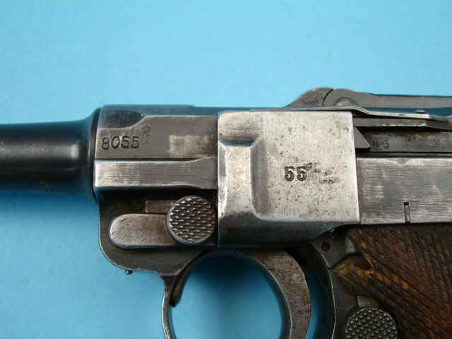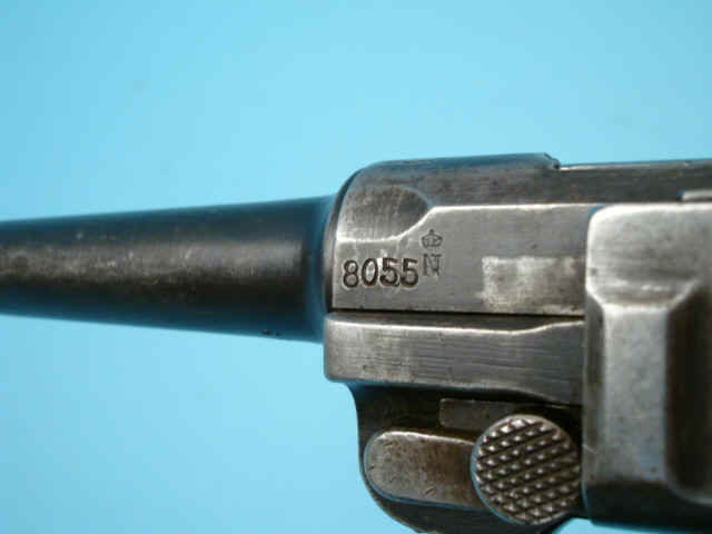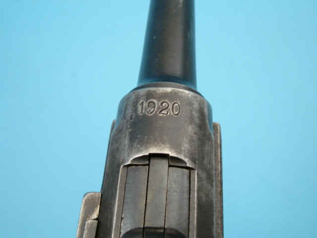 Serial no. 8055, 9mm, 4-inch barrel. Blued finish. Breech marked: 1920. Front of