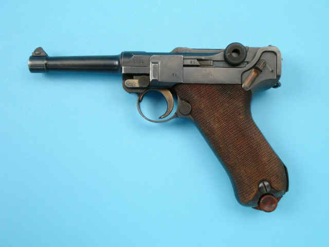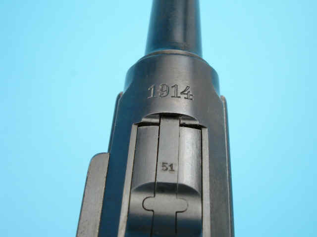 Serial no. 5351, 9mm, 4-inch barrel. Blued finish. Breech dated 1914. German proofs.