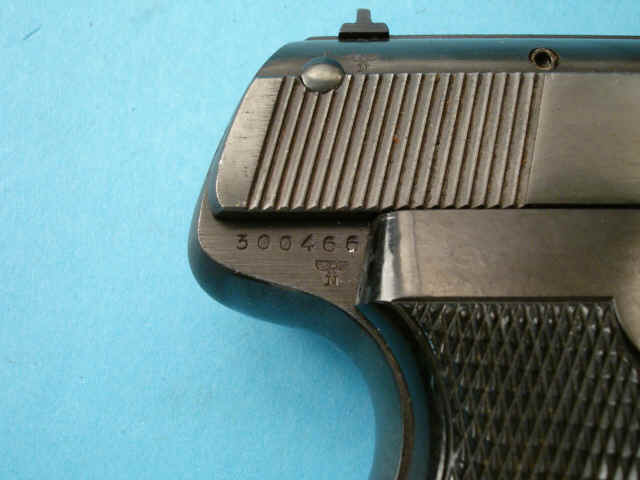 Serial no. 300465, 7.65mm, 3 1/4-inch barrel. Eagle over "N" proofs. Blued