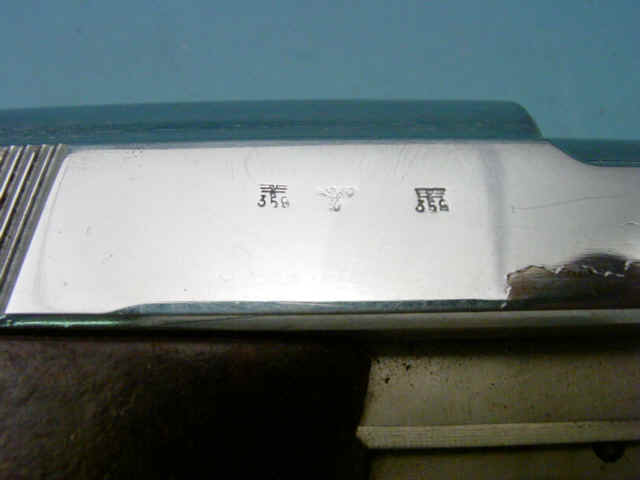Serial no. 892, 9mm, 5-inch barrel. Chrome-plated finish. Waffenampt markings. Phenolic