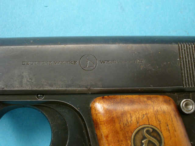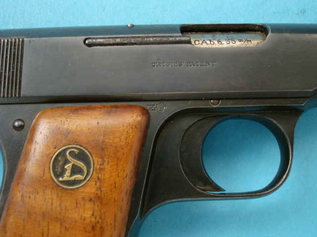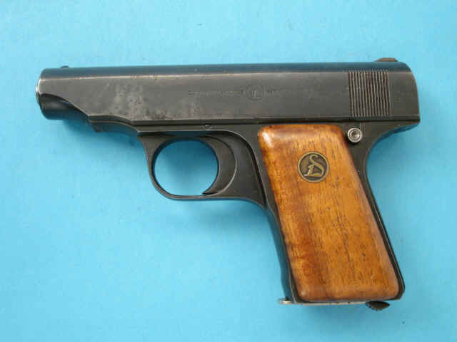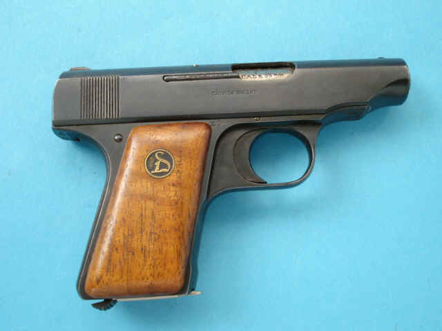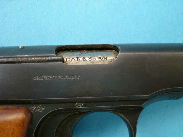 Serial no. 71471, 6.35mm, 2 3/4-inch barrel. Blued finish. Walnut grips with