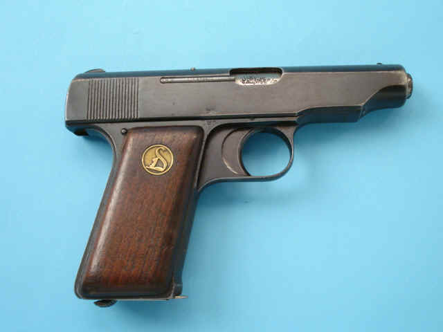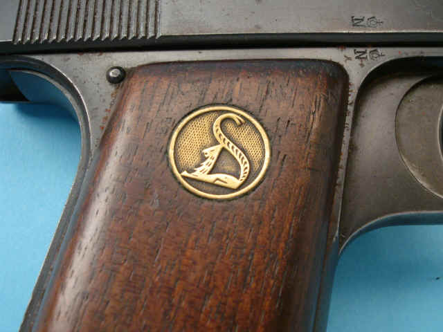 Serial no. 61200, 7.65mm, 3 1/2-inch barrel. "N" proofs. Blued finish. Walnut